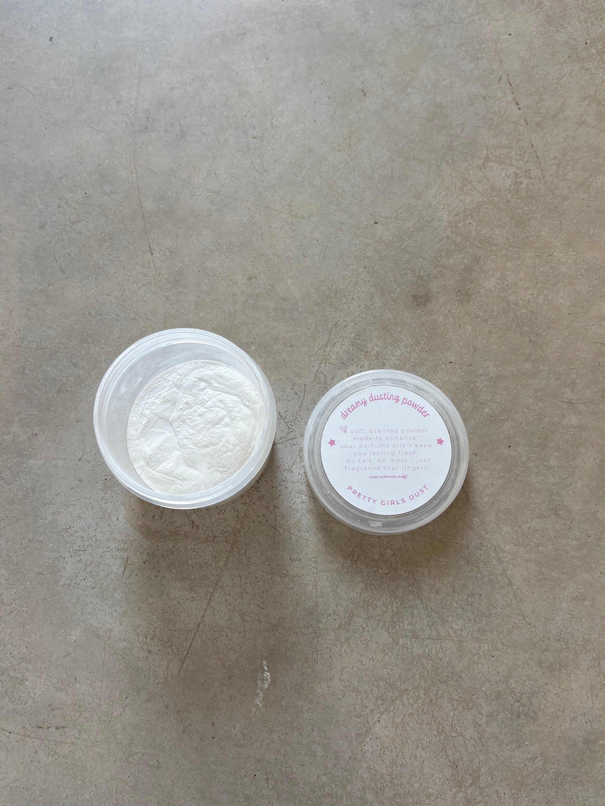 Our dusting powder leaves your skin silky-soft, dry, and deliciously scented. Use it after showers, before bed, or anytime you want to feel like a powdered marshmallow dream. Made for layering with your body care for that extra-edible glo!